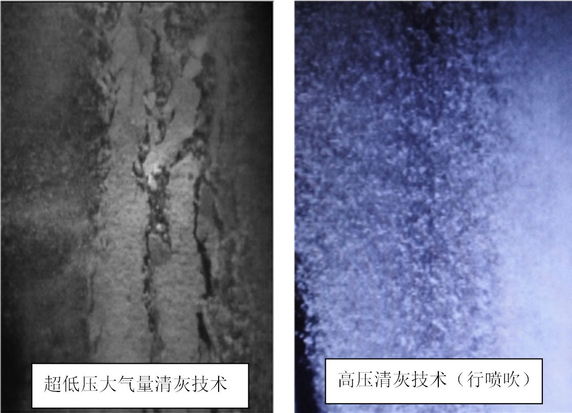 针对干法脱硫后烟气粉尘浓度高(800~1000g/m3)、湿度大、烟温低等工况特点,福建龙净干法团队对其配套布袋除尘器采用超低压脉冲旋转喷吹技术,该技术配合干法脱硫工艺流化床吸收塔的粉尘凝并技术,可以有效实现超低粉尘排放。其主要技术特点如下: